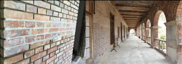 環(huán)廊使用清水磚清洗并使用砂漿置換法加固