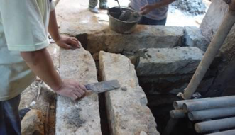 對可用原始構(gòu)件進(jìn)行記錄(左)原始構(gòu)件原位歸安(右)