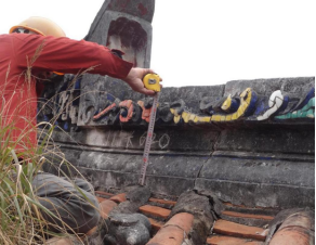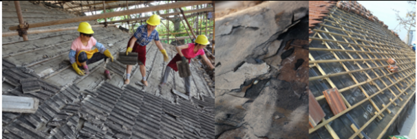 施工團(tuán)隊拆除屋面瓦、重做防水層龍骨