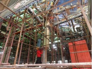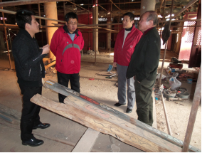 第三,本項目采用了設(shè)計監(jiān)理一體化的運作形式。在業(yè)主單位的統(tǒng)籌監(jiān)督下,設(shè)計單位和監(jiān)理單位派遣責(zé)任設(shè)計師和總監(jiān)理工程師長期駐扎工地,并在施工過程中對于保護(hù)細(xì)節(jié)、工程質(zhì)量和安全進(jìn)行把控,確保設(shè)計、施工、監(jiān)理及時對接。項目各實施方作為整體參與項目,確保維修的設(shè)計理念得到實現(xiàn)和落實,確保維修工程的質(zhì)量,對文物負(fù)責(zé)。同時,項目參與各方充分考慮專家意見,對于修繕過程中的重難點,如屋頂瓦作、彩繪等要素的保護(hù)做法再三斟酌,并在專家的指導(dǎo)下進(jìn)行,充分溝通,確保維修工程不出錯,使專家在整個工程的實施過程中起到了良好的技術(shù)指導(dǎo)和風(fēng)險管控的作用。