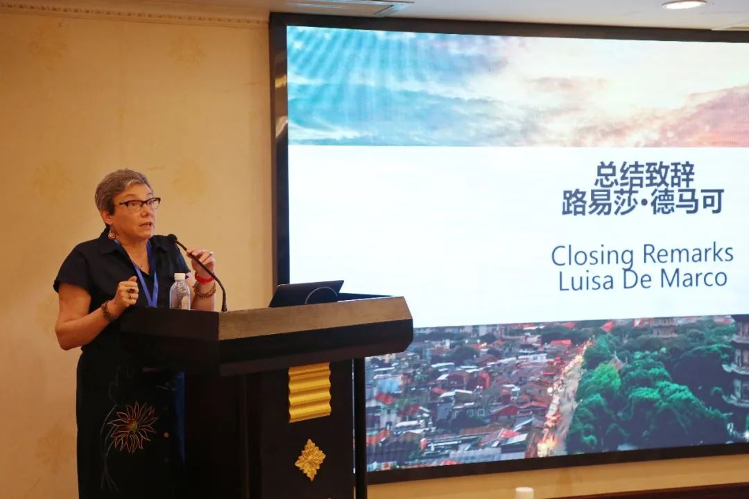 路易莎·德馬克(Luisa De Marco)代表所有的專家作總結(jié)發(fā)言,她首先對主辦方表達(dá)了由衷的感謝。本次為期一周的工作坊通過講座、案例研討、實地考察與實踐相結(jié)合的形式,在各主辦單位的高效組織下,深入考察了福建文化遺產(chǎn)保護(hù)與活化的成功實踐,特別感謝泉州文廣旅局及泉州文保中心的支持。本次工作坊聚焦《世界遺產(chǎn)公約》核心原則與操作指南,重點探討了系列遺產(chǎn)申報的獨特價值與挑戰(zhàn)。德馬克強(qiáng)調(diào),系列遺產(chǎn)需呈現(xiàn)文化現(xiàn)象的整體性,而非簡單組合;管理需融合宏觀規(guī)劃與社區(qū)參與;應(yīng)重視全球價值與地方敘事的融合。在一周的時間里,工作坊組織了豐富的講座來應(yīng)對不同的問題,而實地考察,則生動呈現(xiàn)了遺產(chǎn)的多層價值與跨國文化交融。她表示,十分期待能與各國同仁在今后共同推進(jìn)遺產(chǎn)保護(hù)事業(yè)。
