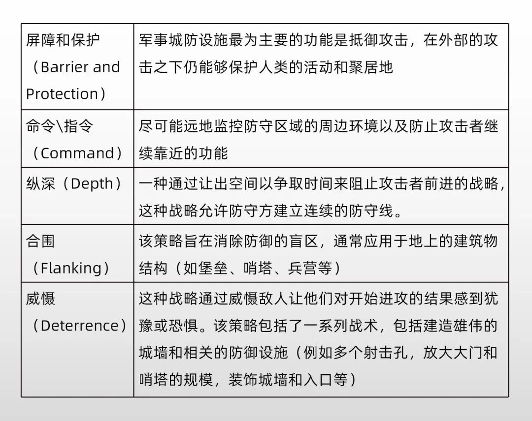 在這些價(jià)值的定位中,還需要注意軍事防御設(shè)施的戰(zhàn)略位置,設(shè)計(jì)如何反應(yīng)武器裝備的空間分配、預(yù)定圍攻或進(jìn)攻的類型、防御外延以及要保衛(wèi)的領(lǐng)土的地形和生態(tài)系統(tǒng)。