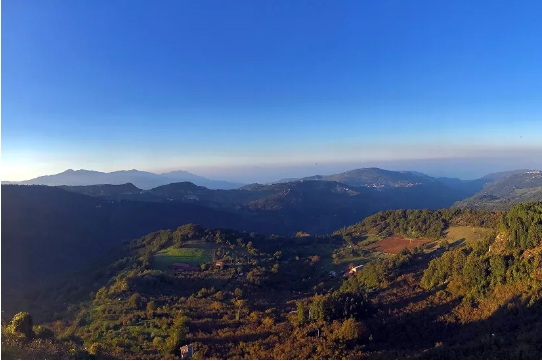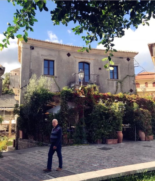 小鎮(zhèn)位于西西里島中部的山地區(qū)域,距我們到達(dá)的卡塔尼亞機(jī)場(chǎng)車程有近100公里,接機(jī)大巴在蜿蜒曲折的山路上行走了兩個(gè)小時(shí),才抵達(dá)蒙塔爾巴諾小鎮(zhèn)。山路環(huán)繞中,小鎮(zhèn)突入眼瞼,給人強(qiáng)烈的震撼。下午的仰光照耀下,土黃色基調(diào)的小鎮(zhèn)坐落在郁郁蔥蔥的山野中,褐色瓦頂上方,是一片湛藍(lán)的天空,小鎮(zhèn)最高處是建于中世紀(jì)的斯瓦比安-阿拉貢塞城堡,厚重的城墻和高聳的塔樓居高臨下,與周圍漫山的建筑相映成輝。
