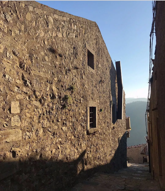 除了附近的礦泉水廠,小鎮(zhèn)最大的經(jīng)濟(jì)來源是旅游。平日里人流罕至,到了周末,一撥一撥的游客開始出現(xiàn),組團(tuán)或自駕前來參觀。游客為古城帶來了生機(jī),除了城堡、教堂等重要?dú)v史建筑外,鎮(zhèn)政府還利用老建筑改造為歷史照片館、美術(shù)館,展現(xiàn)小鎮(zhèn)的悠久歷史和藝術(shù)成就,沿小鎮(zhèn)周圍還修建了步道和觀景臺(tái),使辛苦爬山的游客能夠在山頂遠(yuǎn)眺周圍綿延山脈和遠(yuǎn)處的地中海。游客的到來也為小鎮(zhèn)帶來了收入,當(dāng)?shù)鼐用耖_起了民宿、旅館和餐廳,會(huì)議期間小鎮(zhèn)內(nèi)的住宿點(diǎn)幾戶全部客滿,我們此行居住的就是其中一家民宿,名為中世紀(jì)度假村,由緊鄰的幾棟小房子組成,每個(gè)小房子為一間客房。小房子雖為新建,但用的當(dāng)?shù)貍鹘y(tǒng)石砌墻體和瓦屋面,內(nèi)外裝飾極為簡(jiǎn)樸,與小鎮(zhèn)歷史環(huán)境相協(xié)調(diào)。