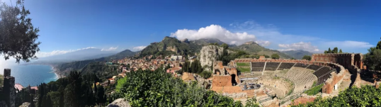 古希臘劇場(chǎng)遺址和西西里典型的山海城景觀