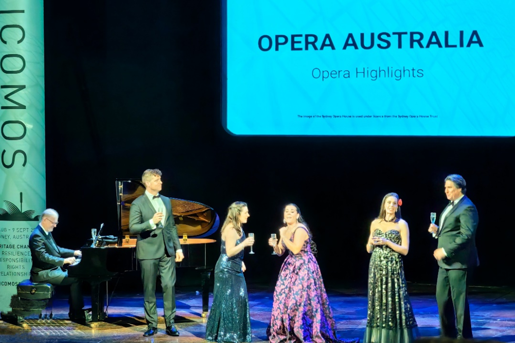 2023年9月3日晚,第21屆ICOMOS全體大會及科學(xué)研討會在悉尼歌劇院正式開幕。開幕之前,澳大利亞歌唱家為與會代表呈現(xiàn)了精彩的歌劇演唱,大會召集人Richard Mackay作為開幕式主持人介紹了此次大會的籌備歷程,并邀請澳大利亞原住民Gadigal民族長者Allen Madden、本屆大會主席/ICOMOS澳大利亞國家委員會主席Tracy Ireland、ICOMOS主席Teresa Patricio分別致辭。特蕾莎表示,來自100多個國家委員會1400多名代表參加了此次大會,她代表ICOMOS向與會專家表示歡迎并感謝為此次會議辛勤籌備的工作人員。此外,澳大利亞新南威爾士州文化部長Penny Sharpe和澳大利亞環(huán)境部長Tanya Plbersek也分別致辭,并介紹了澳大利亞的遺產(chǎn)和環(huán)境保護(hù)。