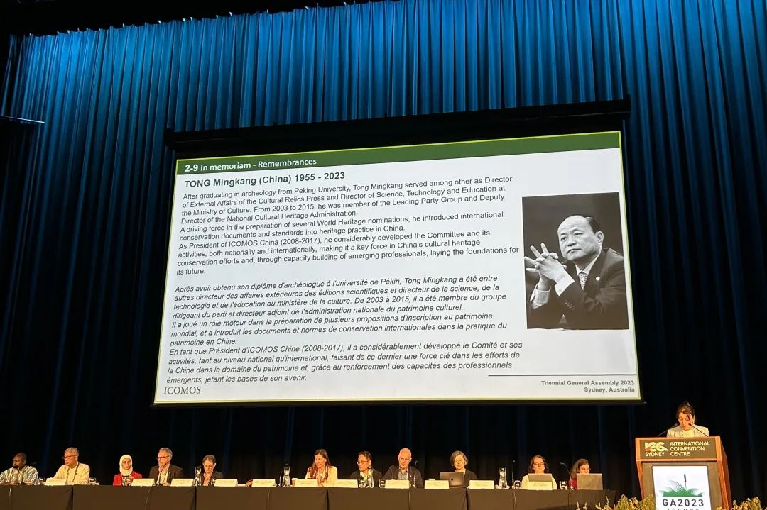 9月4日,第21屆ICOMOS全體大會及科學(xué)研討會開幕儀式在悉尼國際會議中心(ICC)舉行。大會對ICOMOS China原理事長、國家文物局原副局長童明康的離世表示悼念。