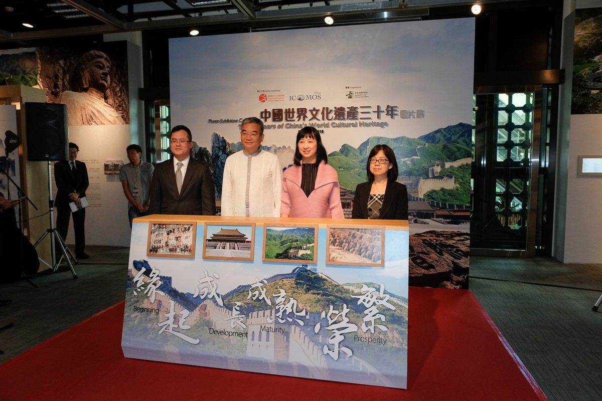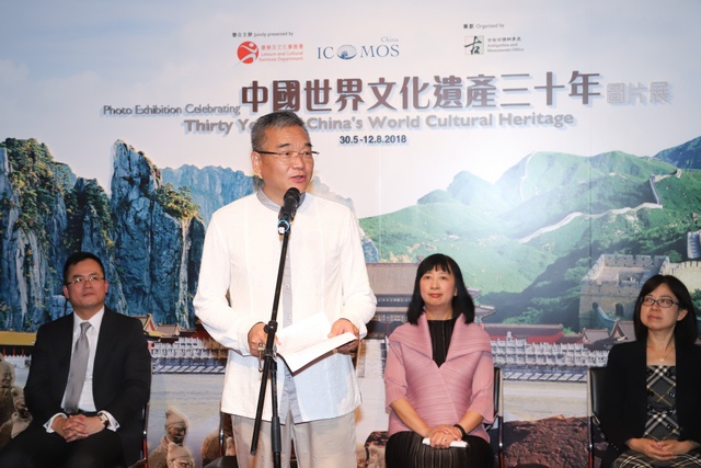 在國家文物局的支持與指導(dǎo)下,由香港特別行政區(qū)政府康樂及文化事務(wù)署和中國古跡遺址保護(hù)協(xié)會聯(lián)合主辦,香港古物古跡辦事處籌劃的“中國世界文化遺產(chǎn)三十年圖片展”于2018年5月29日下午三時(shí)在香港尖沙咀九龍公園香港文物探知館開幕。國家文物局副局長劉曙光、康樂及文化事務(wù)署署長李美嫦、發(fā)展局文物保育專員任浩晨、古物古跡辦事處執(zhí)行秘書蕭麗娟等領(lǐng)導(dǎo)出席了開幕典禮。