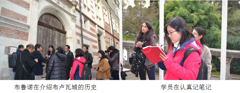 而多樣化的授課模式也是培訓(xùn)班的另一大亮點,繼上午的課堂講解和案例分析之后,當(dāng)天下午學(xué)員們又趕赴同樣位于圖爾市東北部的布盧瓦小城進行實地考察。雖然短短的三個小時并不能將小城的前世今生盡數(shù)了解,但有了盧瓦爾河谷使命主任布魯諾·馬爾米洛里,布盧瓦市城市規(guī)劃負責(zé)人克里斯蒂娜·舍芙麗和布盧瓦市“歷史與藝術(shù)之城”項目負責(zé)人、建筑與遺產(chǎn)項目負責(zé)人艾瑪努埃爾·普呂美三位講師的介紹與講述,學(xué)員們在驚嘆古城完美改造的同時也獲得了不少新的啟發(fā)。