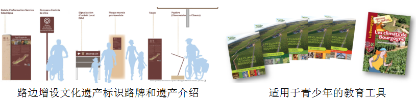 同樣是在遺產(chǎn)增值、傳播和宣傳推廣方面有著成功經(jīng)驗的勃艮第葡萄園則有著不一樣的故事。作為一處歷經(jīng)2000年人類耕作,造就了獨特的人文景觀,以體現(xiàn)風(fēng)土(Climat)為本的葡萄園耕作模式而舉世聞名的文化遺產(chǎn),勃艮第葡萄園依托勃艮第葡萄園風(fēng)土協(xié)會,通過“自下而上”的方式,與各方參與者共同經(jīng)營、保護、宣傳和推廣。貝特朗解釋說勃艮第葡萄園因其葡萄酒早已名揚國內(nèi)外,而他們所要做的傳播與推廣是讓更多的人不僅了解勃艮第的葡萄酒,更要了解其作為一處世界文化遺產(chǎn)的突出普遍價值。該協(xié)會通過在遺產(chǎn)地內(nèi)及周邊增設(shè)闡釋工具,對當(dāng)?shù)鼐妻r(nóng)和品酒師進行專業(yè)培訓(xùn),編寫并向各個學(xué)校分發(fā)教育宣傳冊,舉辦主題活動等方式來統(tǒng)一而準確地傳播其遺產(chǎn)價值。面向公眾的專業(yè)且準確的價值傳播許是中國大多數(shù)遺產(chǎn)地未來努力的方向。