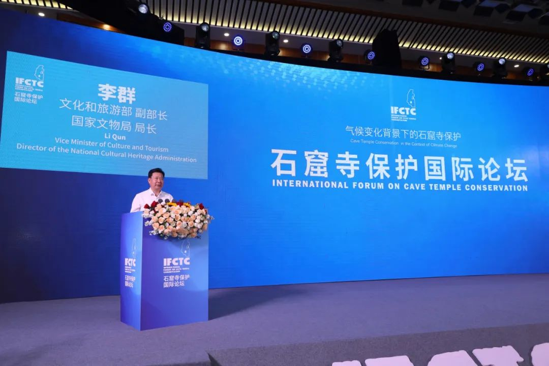 李群表示,習(xí)近平總書記高度重視文物工作,實地考察莫高窟、云岡石窟,勉勵廣大文物工作者堅持保護第一,在保護的基礎(chǔ)上將石窟寺研究利用好。中國石窟寺在選題、內(nèi)容、造型等方面都有著突出的中國特色,彰示了中華文明突出的連續(xù)性、創(chuàng)新性、統(tǒng)一性、包容性、和平性。國家文物局積極關(guān)注全球氣候變化給文化遺產(chǎn)保護帶來的影響,謀劃舉辦石窟寺保護國際論壇,旨在聯(lián)合國際力量,凝聚保護共識,實現(xiàn)深入交流,推動全方位合作,以更積極的態(tài)度和更務(wù)實的工作推動石窟寺保護,進一步挖掘闡釋石窟寺的多元價值和豐富歷史內(nèi)涵,保護展示獨具東方魅力的藝術(shù)杰作,激發(fā)弘揚石窟寺所承載的時代精神,為保護人類智慧結(jié)晶貢獻力量。