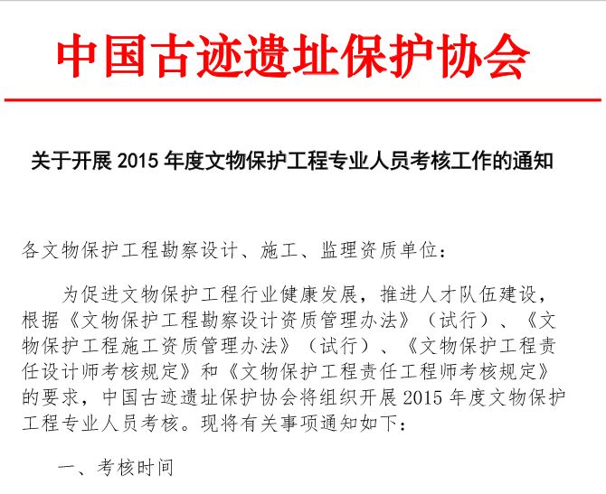 文物保護(hù)工程從業(yè)人員2015年考核通知