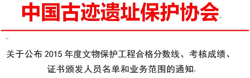 關于公布2015年度文物保護工程合格分數線、考核成績、證書頒發(fā)人員名單和業(yè)務范圍的通知