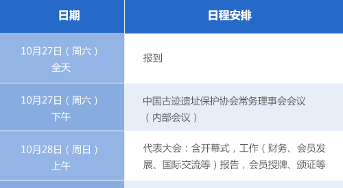 各團體會員單位、專業(yè)委員會、個人會員:中國古跡遺址保護協(xié)會定于2018年10月27日(周六)至29日(周一)期間,于上海市歷史博物館(南京西路325號),召開2018年度會員代表大會?,F(xiàn)就有關(guān)事宜通知如下:一、會議組織主辦單位:中國古跡遺址保護協(xié)會承辦單位:上海建為歷保科技股份有限公司支持單位:上海市歷史博物館(上海革命歷史博物館) 中國文物保護基金會科技保護專項基金地點:上海市歷史博物館(上海革命歷史博物館),南京西路325號二、邀請以下人員參會(一)邀請團體會員單位選派代表參會;(二)邀請個人會員(含國內(nèi)會員、國際會員)參會;(三)邀請各專業(yè)委員會選派代表參會,并組織召開10月28日下午的分會場學(xué)術(shù)研討會。三、食宿安排參會人員交通費用自理;住宿由主辦方統(tǒng)一安排,費用自理。10月28日午餐由主辦方統(tǒng)一安排。四、會議日程(草案)請?zhí)顚懸韵聟竺恚ㄒ姼郊?,?018年9月30日17點前,反饋至?xí)T代表大會工作組。聯(lián)系人:洪韡(wei)、李忠鈺聯(lián)系電話:010-84633592,13580378681報名郵箱:icomoschina@126.com特此通知。中國古跡遺址保護協(xié)會二零一八年九月十四日———— 附件 ————報名表
